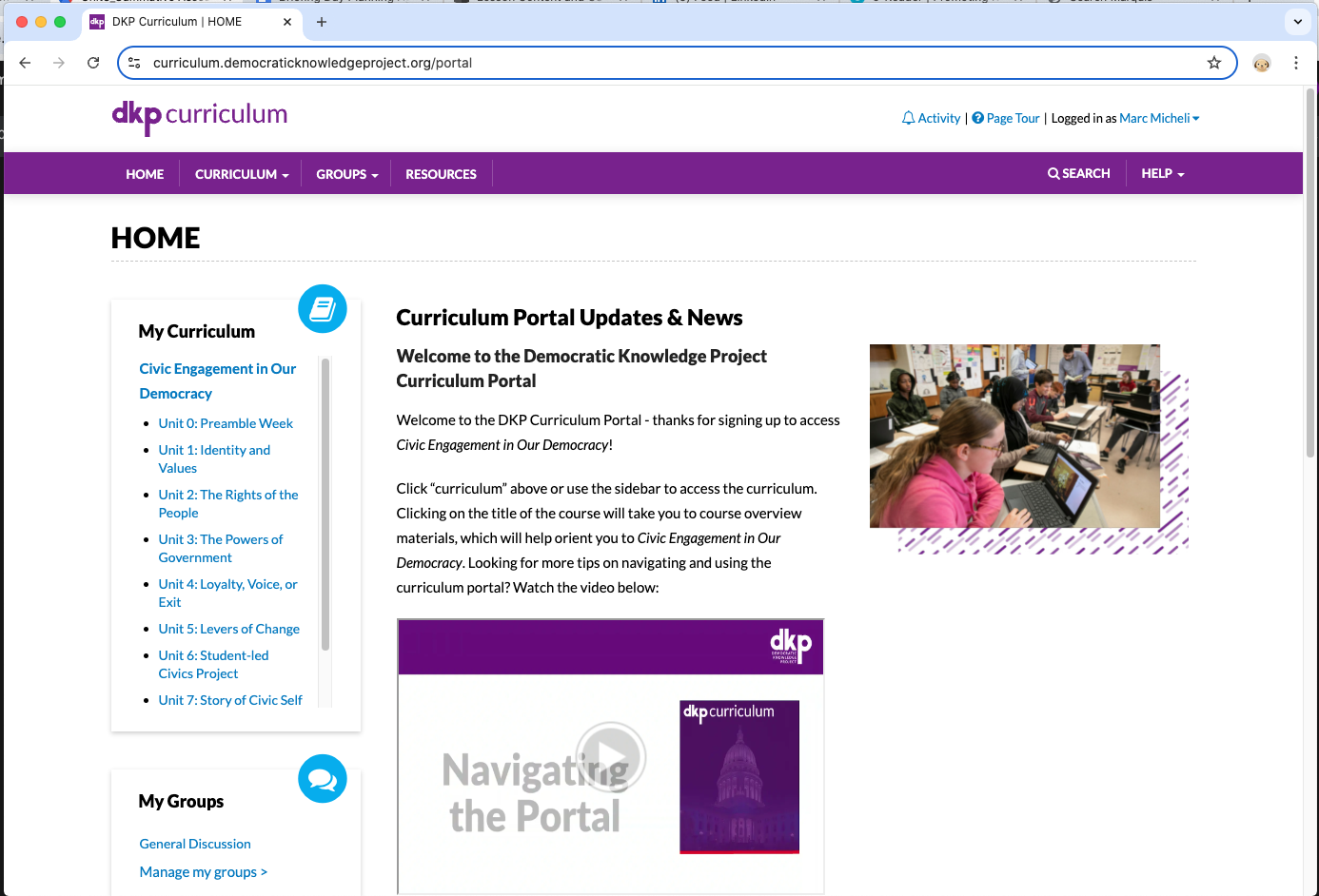 The Democratic Knowledge Project is an initiative of the Harvard Graduate School of Education. Their DKP Curriculum Portal is focused on themes in a typical civics or social studies course. The web site says the lessons plans are accessible at 5th and 8th grade levels according to Massachusetts standards, but much of it is rigorous enough to be appropriate for many high school courses.